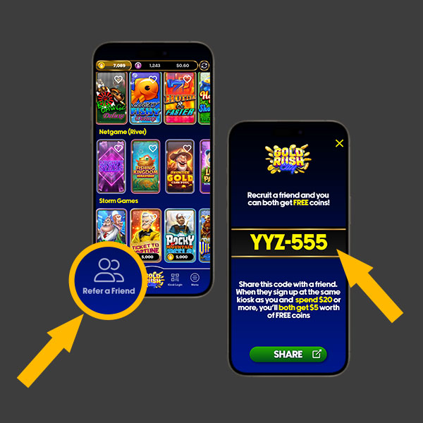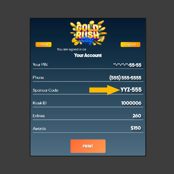 Step 6 – You get $5.00 cash the moment that new player spends $20.00 or more! The value is assigned to your account, and you can withdraw from the kiosk whenever you like.