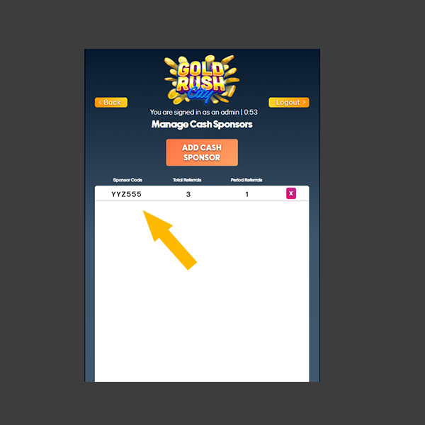 Step 4 – The kiosk administrator adds your code to the list of Cash Supports
